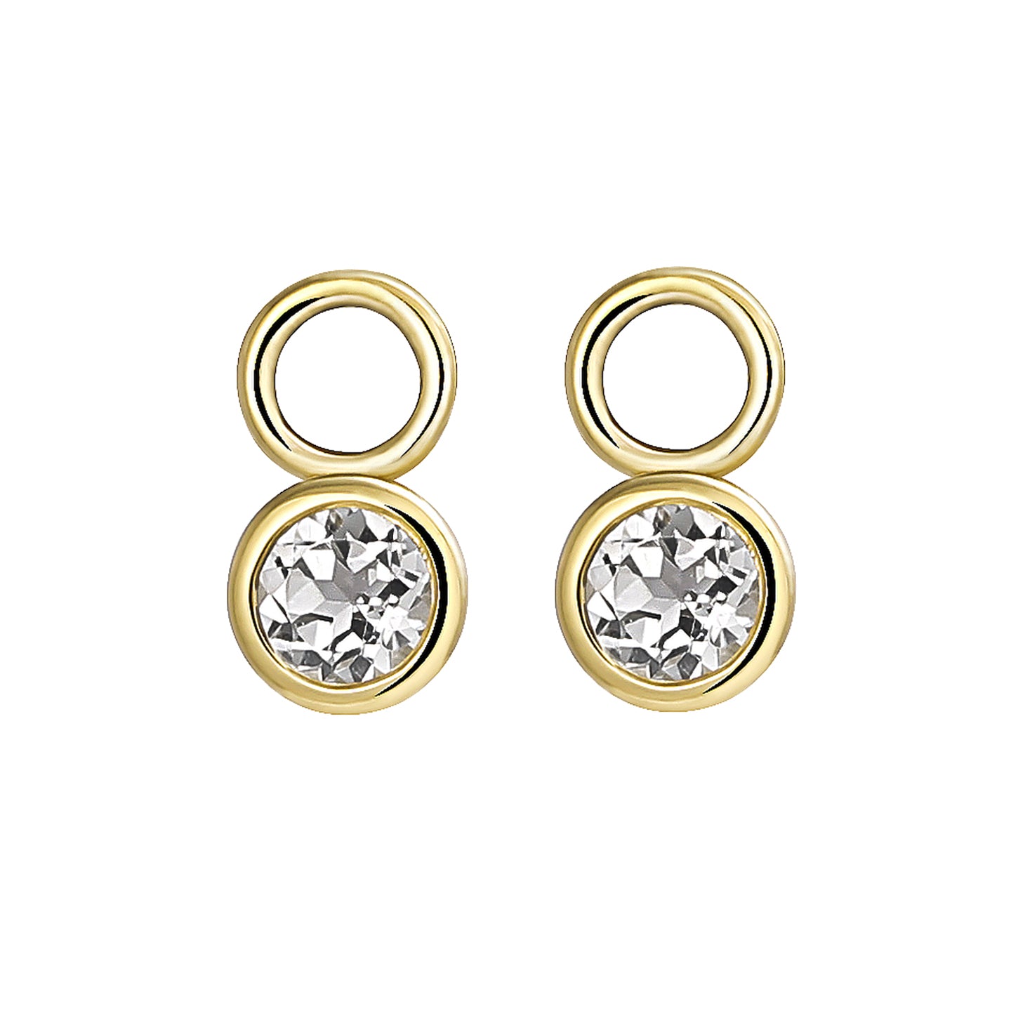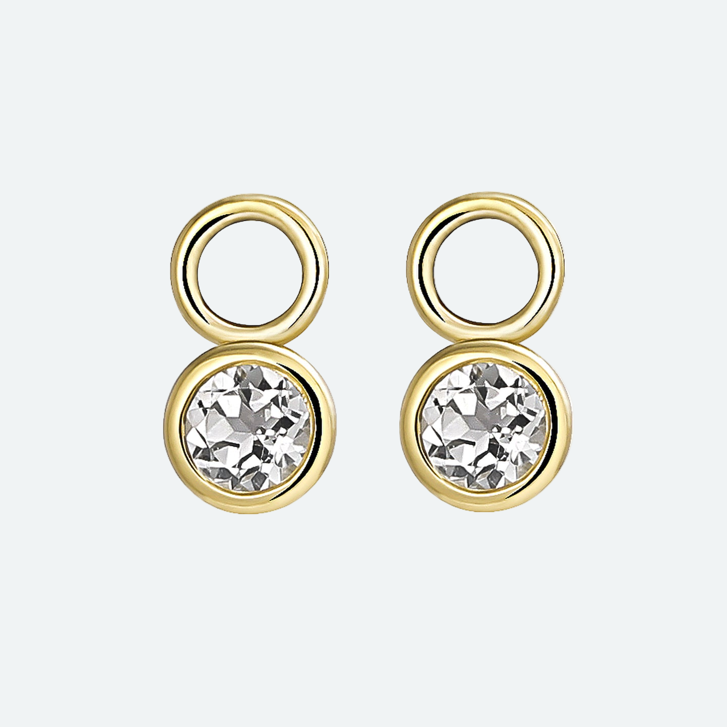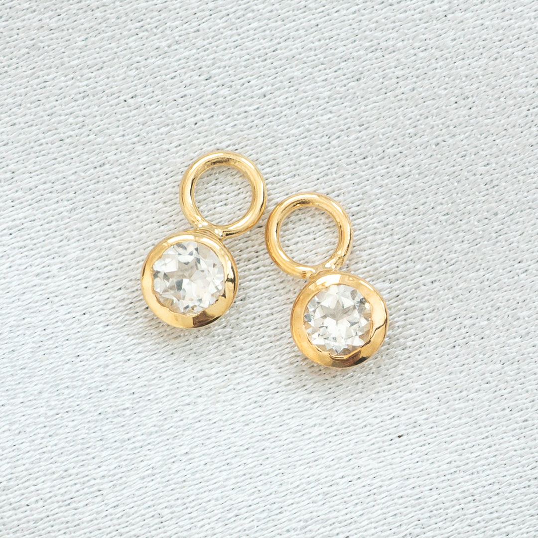 En klassisk briljantslipad vit topas infattad i ett fäste av 18K guldförgyllt silver, detta eleganta hänge är en perfekt tillskott till vilken uppsättning som helst.