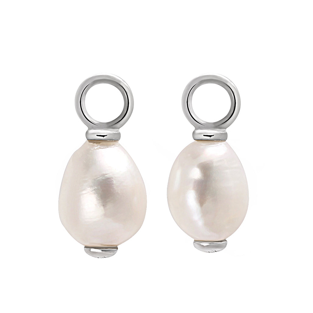Vit barock odlad sötvattenpärla. Passar perfekt för matcha med andra silverdetaljer som handväska, solglasögon eller knappar.
