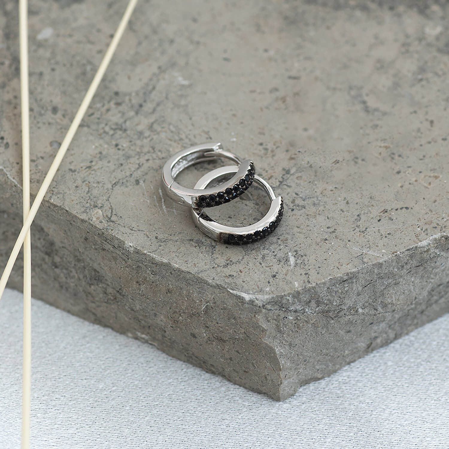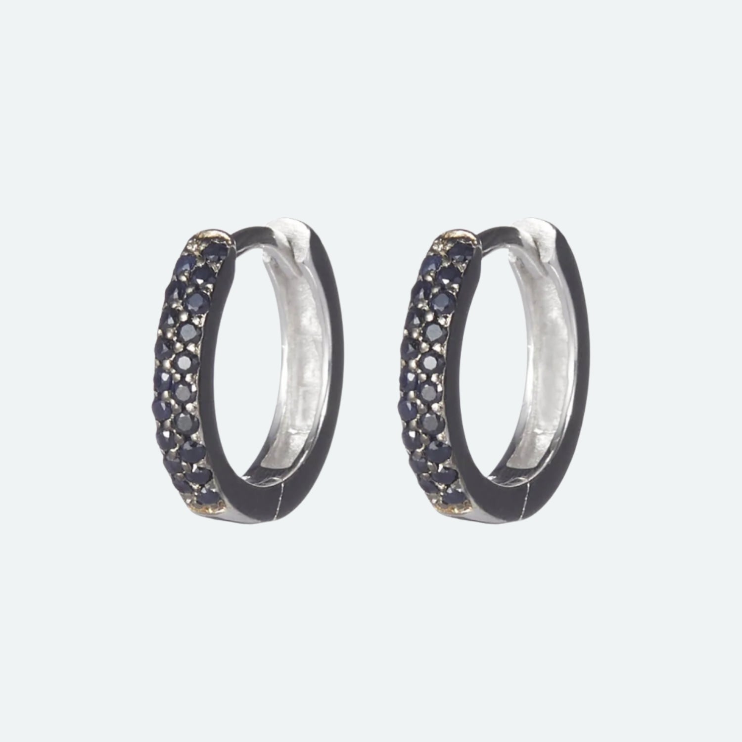 Denna elegant handgjorda creole i silver, prydd med svarta safirer, är din go-to för bekväm elegans med en stilig attityd.