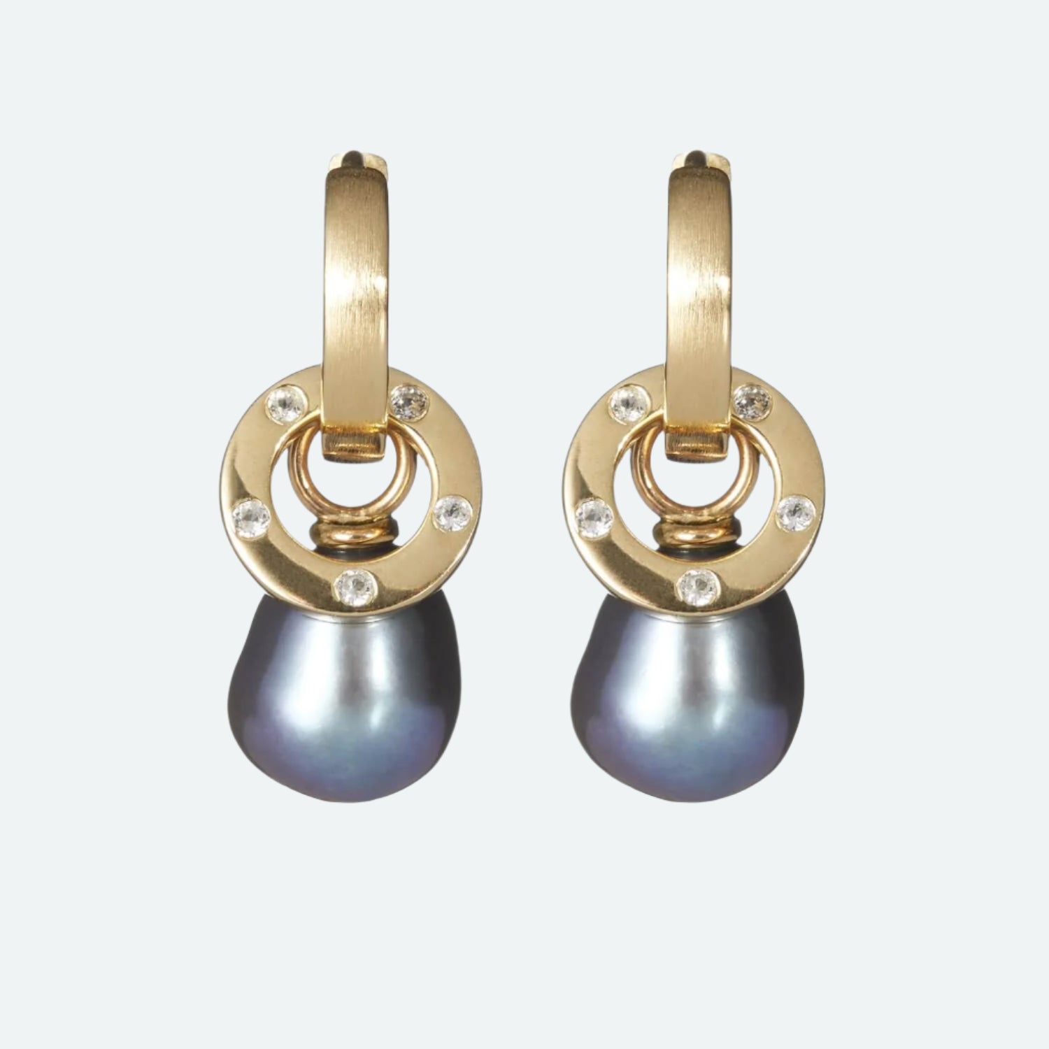 En favorit åter i lager - detta double set utgörs av peacockfärgade sötvattenpärlor i kombination med astridhänget och classic-creoler i 18K guldförgyllt silver. En fantastiskt vacker färgkombination och ett lika vackert örhänge.