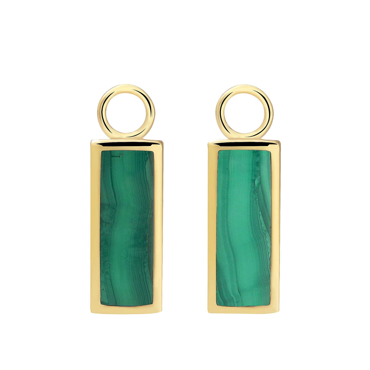 Vi är oerhört stolta att presentera dessa fantastiska hängen i den underbart och vågigt gröna malakiten inramat av 18K guldförgyllt silver - vår nya personliga favorit!