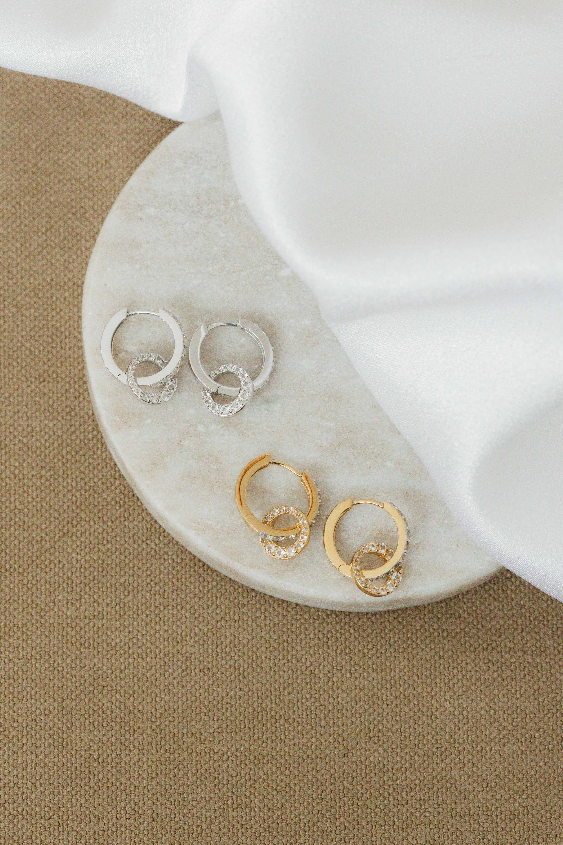 Handgjorda cirkelformade hängen dekorerade med 15 stycken vita topaser. En blivande klassiker i vår Rebel Collection.